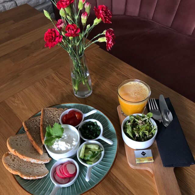 Wybierz spośród zawrotnej liczby dań tradycyjnej polskiej kuchni i daj się zafascynować. Jesteśmy znani z naszych zdrowych dań. Na przykład spróbuj naszej smacznej kanapki lub świeżych chlebów oraz dobrych win i zawierających dużo witamin smoothies. Wielu gości przychodzi do nas, aby posmakować naszych świeżych owoców a także pysznych pączków. Odwiedź nas i rozkoszuj się śniadaniem, brunchem, obiadem lub kolacją. Nasz pyszny bufet ze sporym wyborem dań, w którym każdy znajdzie coś dla siebie. Szczególnie godny polecenia dla rodzin, ponieważ nie trzeba czekać na jedzenie. Oferujemy bezpłatną sieć Wi-Fi, abyś mógł podczas swojego pobytu u nas z łatwością korzystać z Internetu.